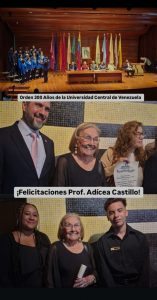 Nos complace anunciar con orgullo que nuestra Directora, la Profesora Adicea Castillo, ha sido honrada con un reconocido galardón otorgado por la Universidad Central de Venezuela.